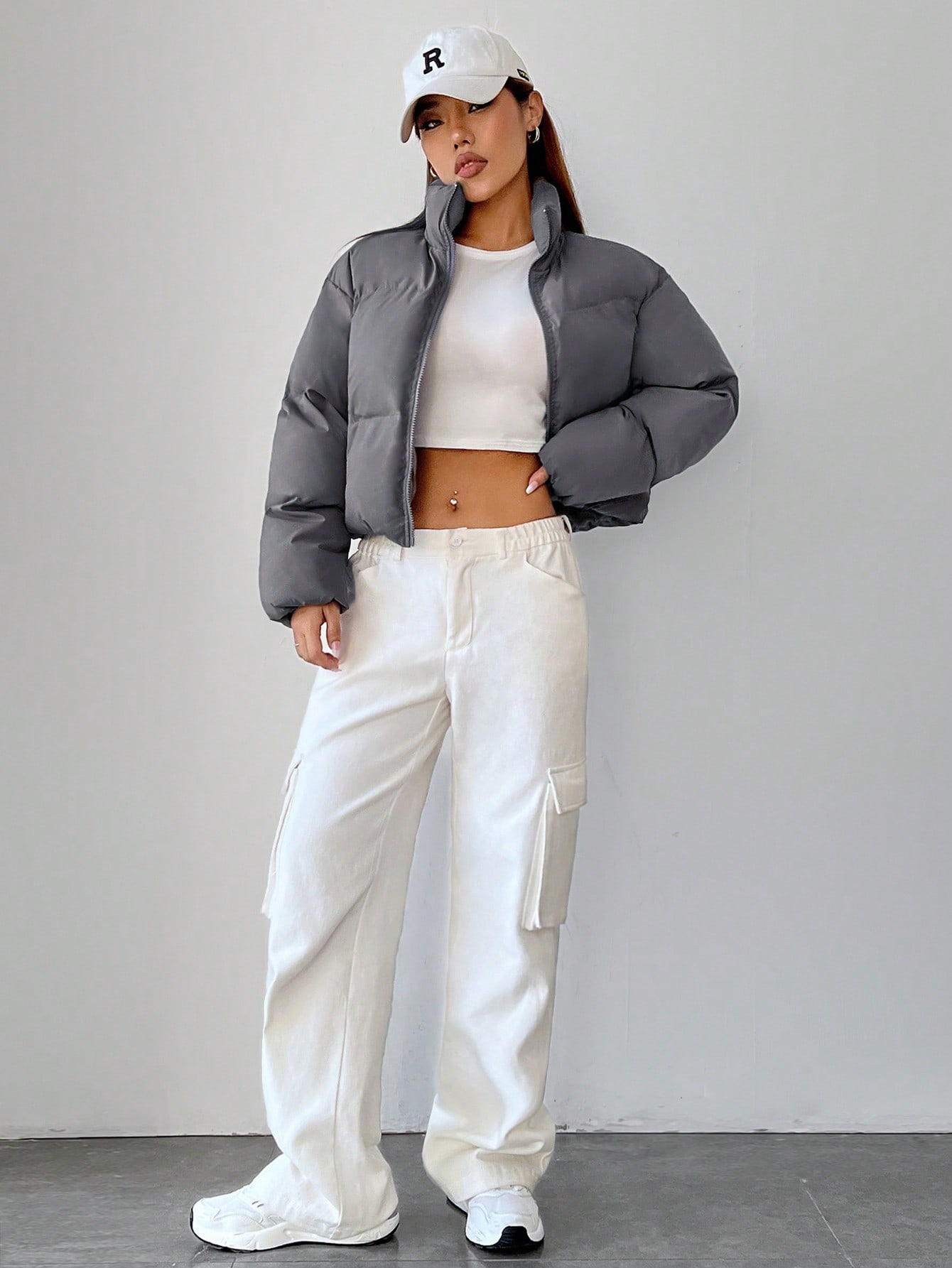 - Zip up crop puffer jacket