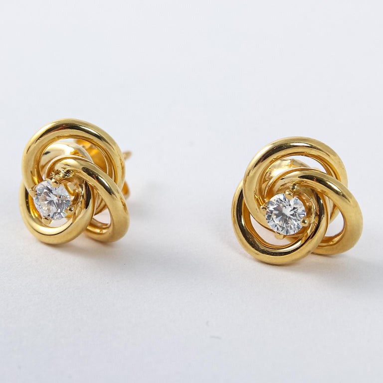 Tiffany gold knot earrings clearance, Pair of Tiffany and Co 18 Karat Yellow Gold Love Knot Diamond Earrings For Sale at 1stDibs clearance