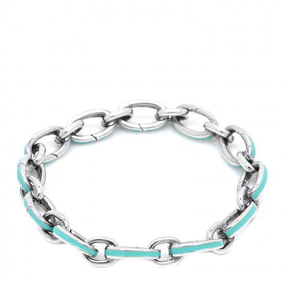 Sterling silver clasping link clearance, TIFFANY Sterling Silver Enamel Clasping Link Bracelet Blue 1026035 | FASHIONPHILE clearance