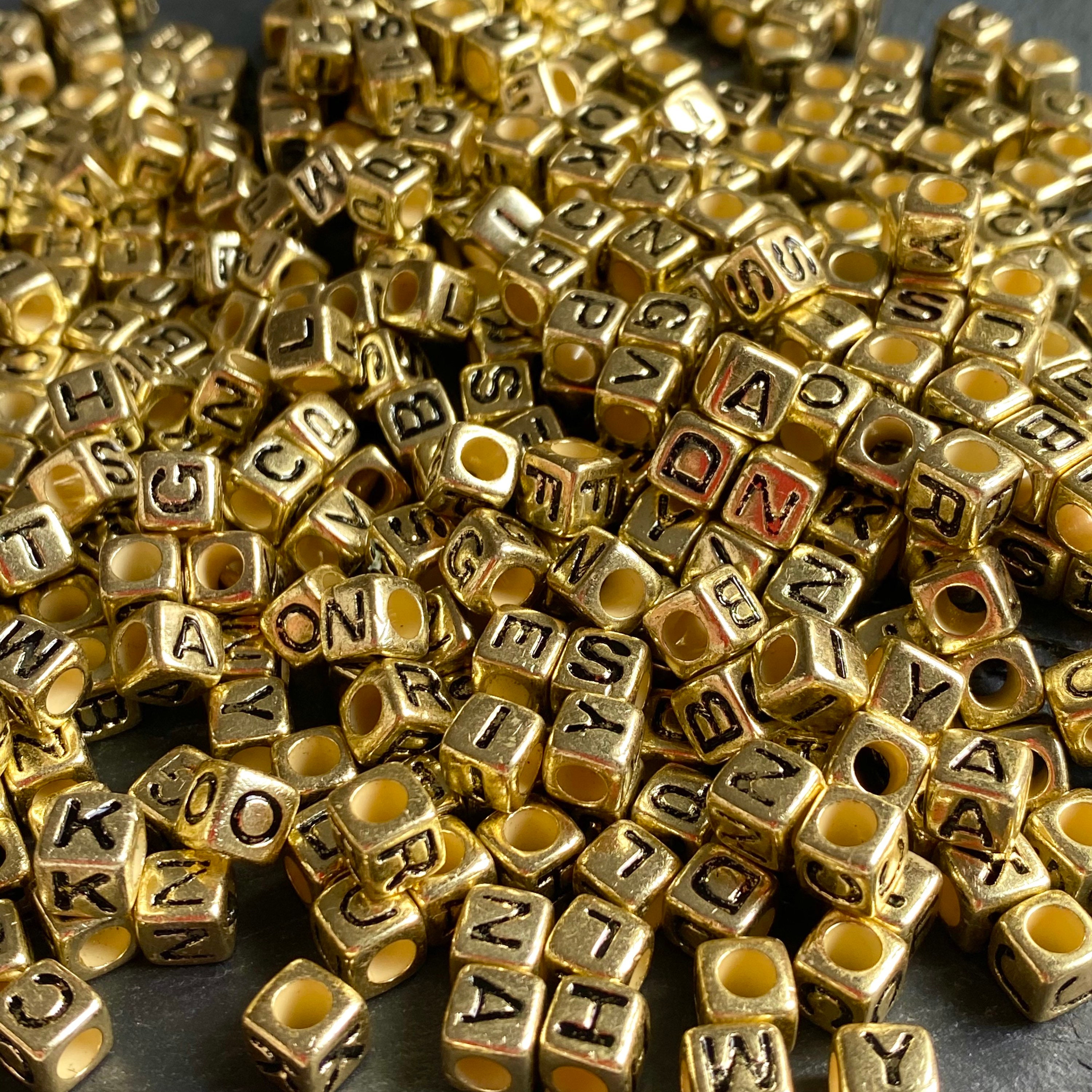 Metal letter beads for jewelry making clearance, Gold Cube Letter Alphabet Beads Name Bracelet Beads Cune | Etsy clearance