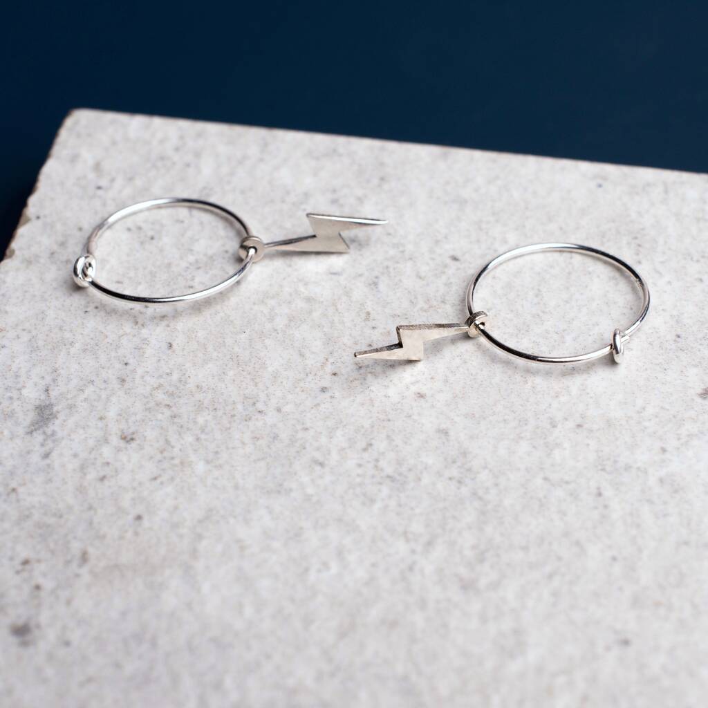 - Lightning bolt hoop earrings silver shop