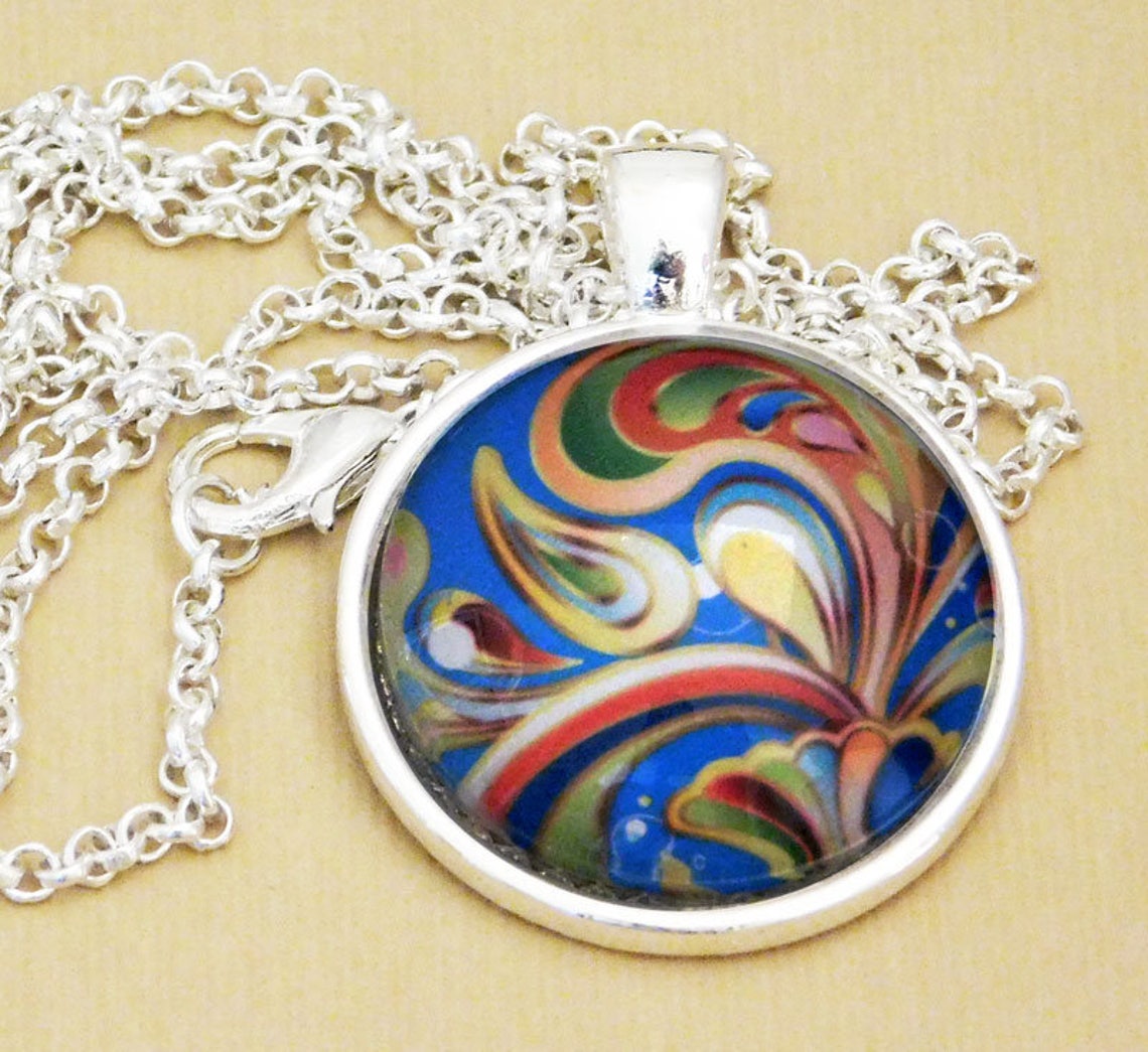 Glass dome pendant necklace clearance, Colorful, 1 Glass Dome Pendant, Pendant Necklace, Glass Dome Necklace, Organza Gift Bag clearance
