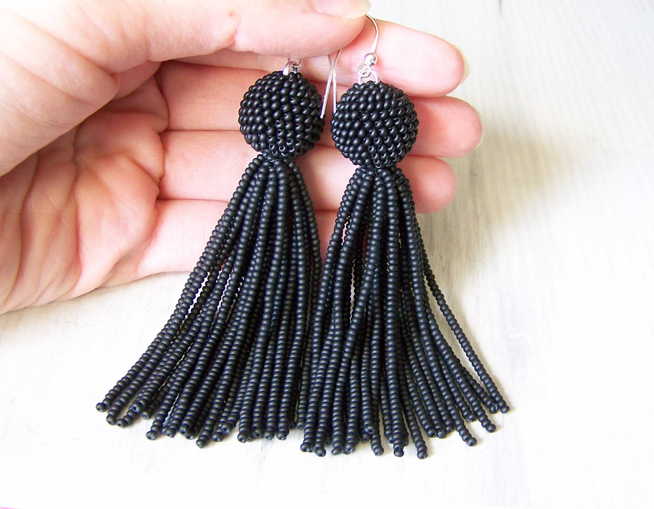 - Black beaded tassel earrings shop