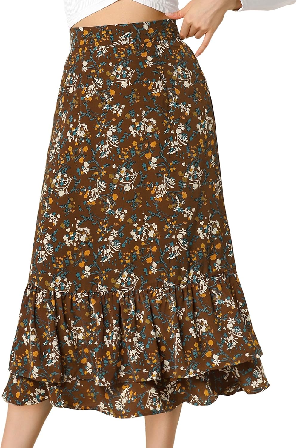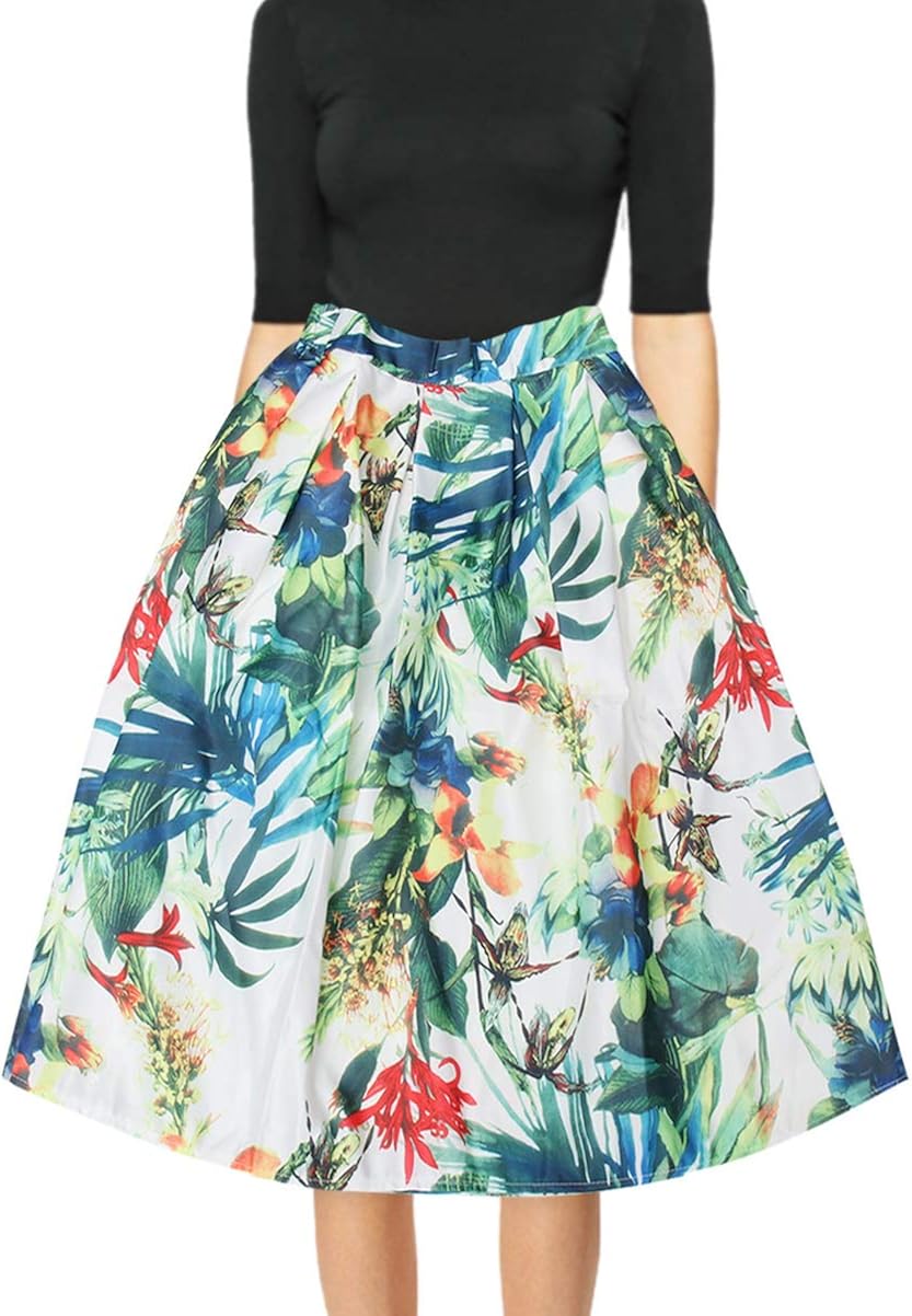 Women's midi skirts elastic waist clearance, Allegra K Women's Floral Skirt Chiffon clearance