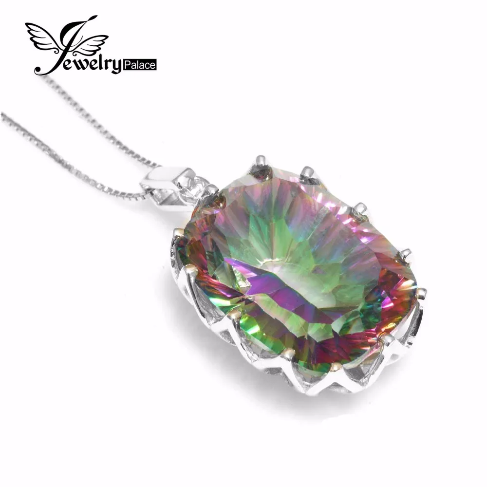 Rainbow topaz necklace clearance, 23ct Natural Mystic Rainbow Topaz Pendent Necklace Charm Women Jewelry Solid Genuine 925 clearance