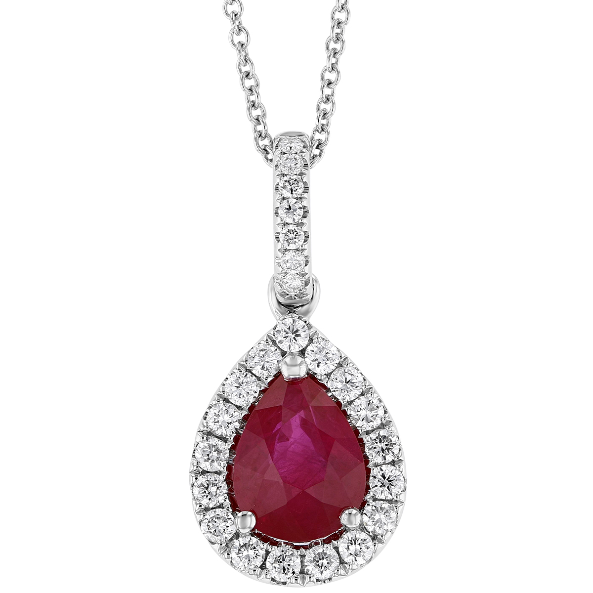 Pear halo necklace clearance, Pear Shaped Ruby & Diamond Halo Pendant in White Gold, 1.42 ct | Borsheims clearance