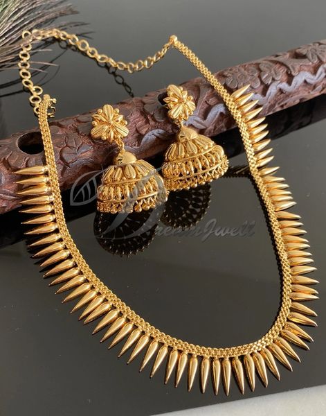 Mulla chain gold clearance, BEAUTIFUL GOLD TONE MULLA MUTTU DESIGNER NECKLACE SET DJ32037 | Temple, Matt Finish, Kemp, CZ clearance