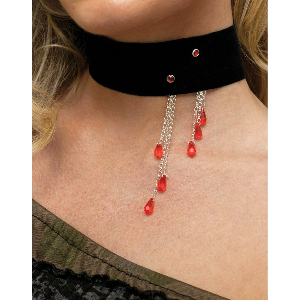 Drop choker necklace clearance, Vampiress Blood Drop Choker Jewelry Horror Adult Halloween Costume Accessory - Walmart.com clearance
