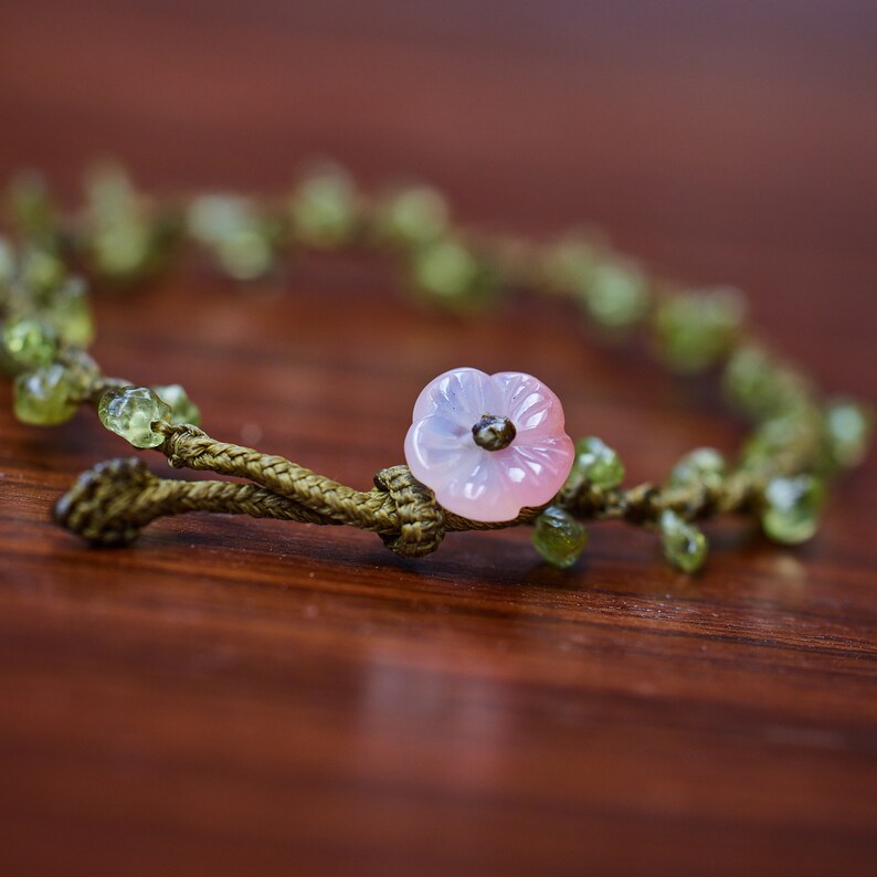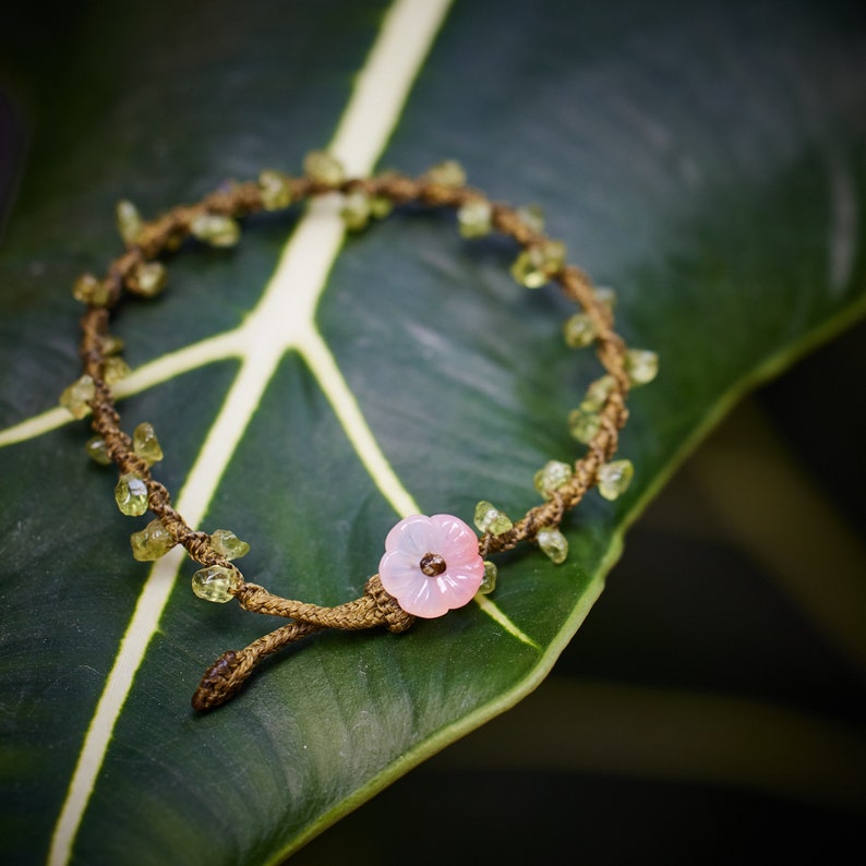 Handmade flower bracelet clearance, Handmade Flower Bracelet. Gifts for Her. Peridot Braided Bracelet. Hand Woven Floral Bracelet clearance