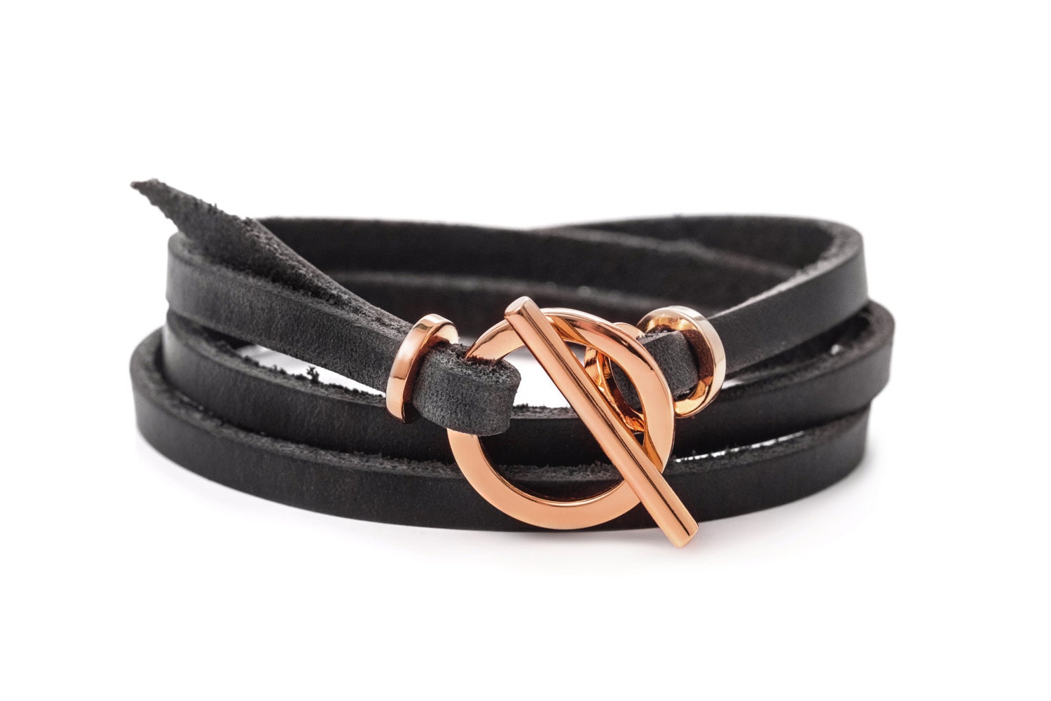 - Rose gold leather bracelet