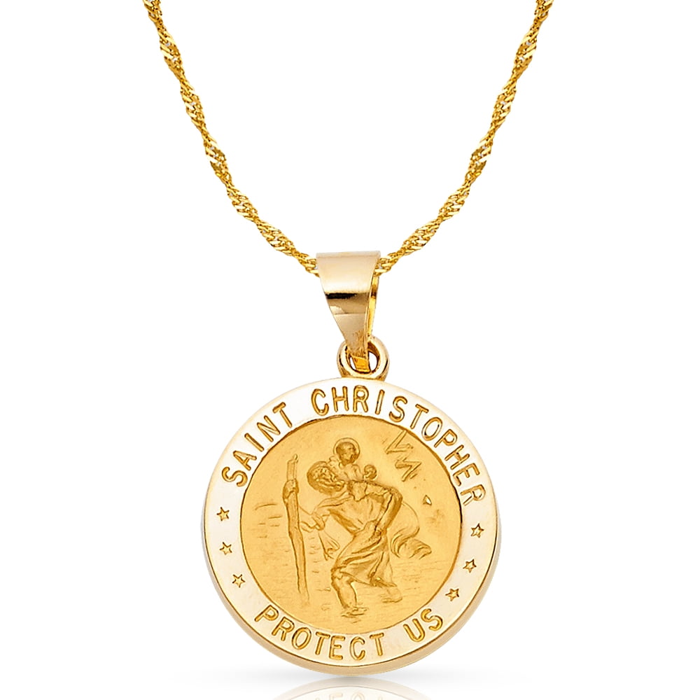 Gold st christopher clearance, IceCarats - 14k Yellow Gold St Christopher Pendant Charm Necklace Religious Patron Saint Medal clearance