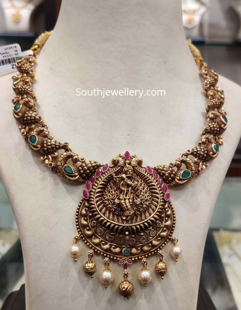 Krishna bansuri necklace clearance, Antique Gold Lord Krishna Pendant - Indian Jewellery Designs clearance