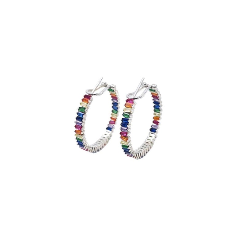 Rainbow hoop earrings silver clearance, Fine Rainbow Silver Hoop Earrings For Sale at 1stDibs clearance