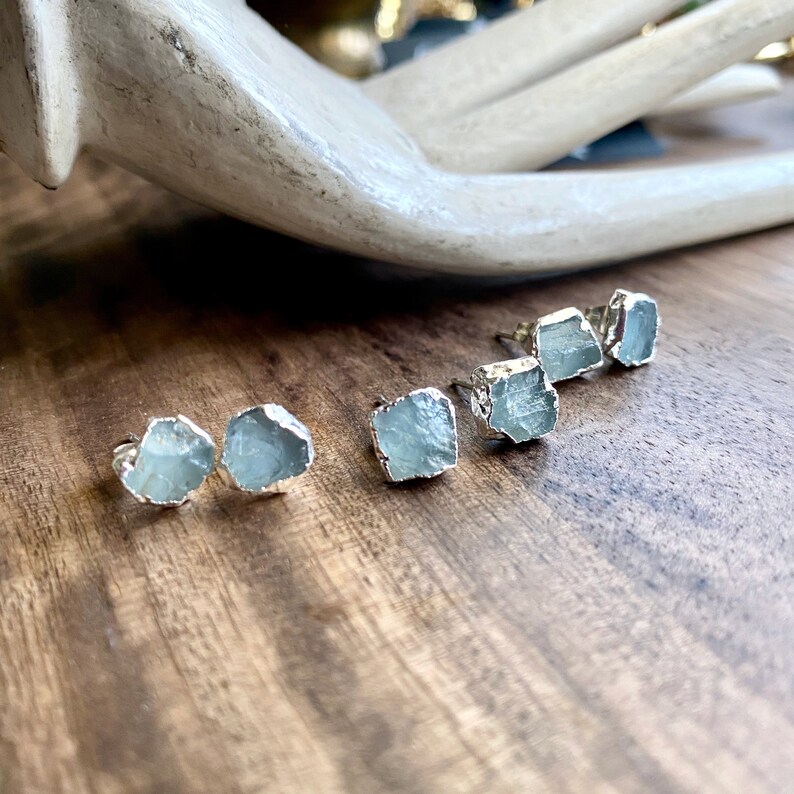 Raw aquamarine earrings clearance, Aquamarine Earrings Silver Aquamarine Stud Earrings Raw - Etsy UK clearance