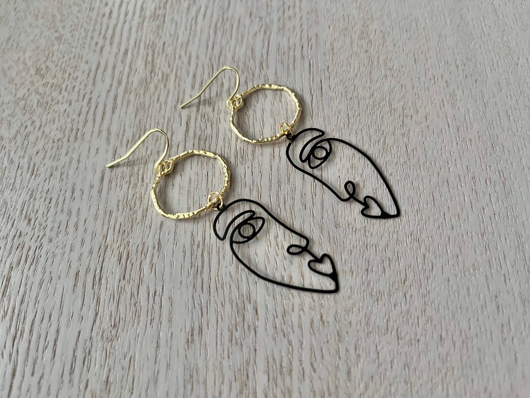 Gold abstract face earrings clearance, Gold Earrings/female Abstract Face Earrings /red Gold Earrings - Etsy clearance