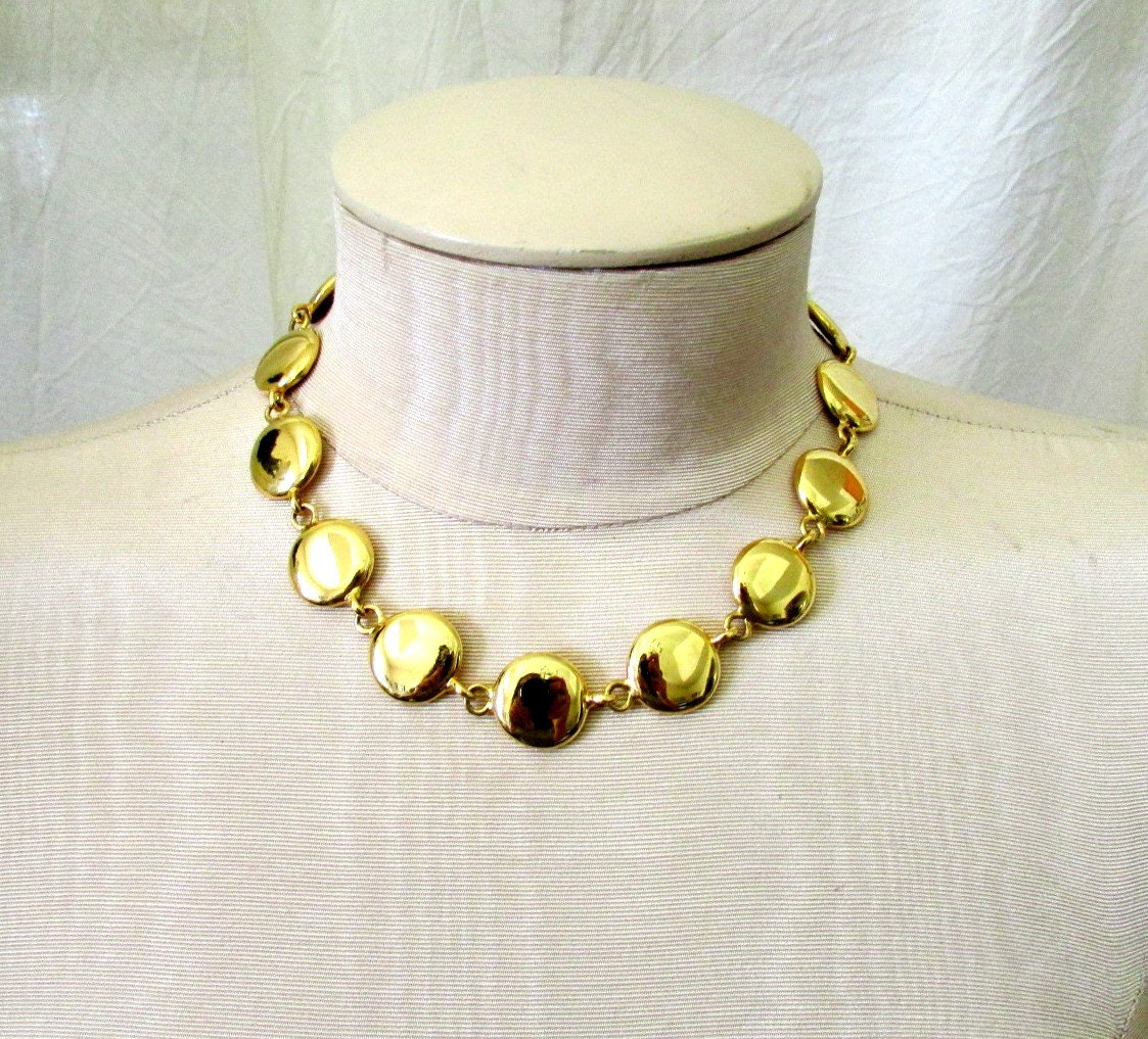 Erwin pearl necklace vintage clearance, Vintage ERWIN PEARL Gold Tone Disk Dot Choker Necklace Polka clearance