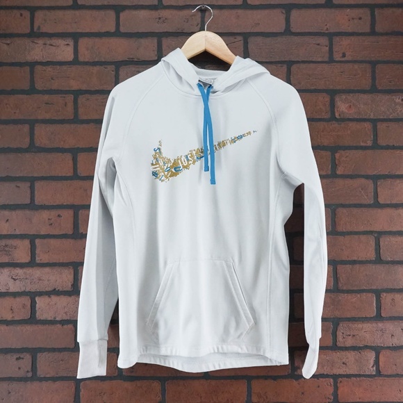 - Shopping White nike hoodie with blue swoosh