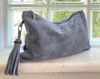 Grey suede clutch bag clearance