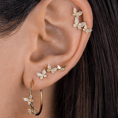 Butterfly dangle hoop earrings clearance, Gold Butterfly Hoop Earrings Butterfly Hoop Dangle Earrings | Etsy clearance