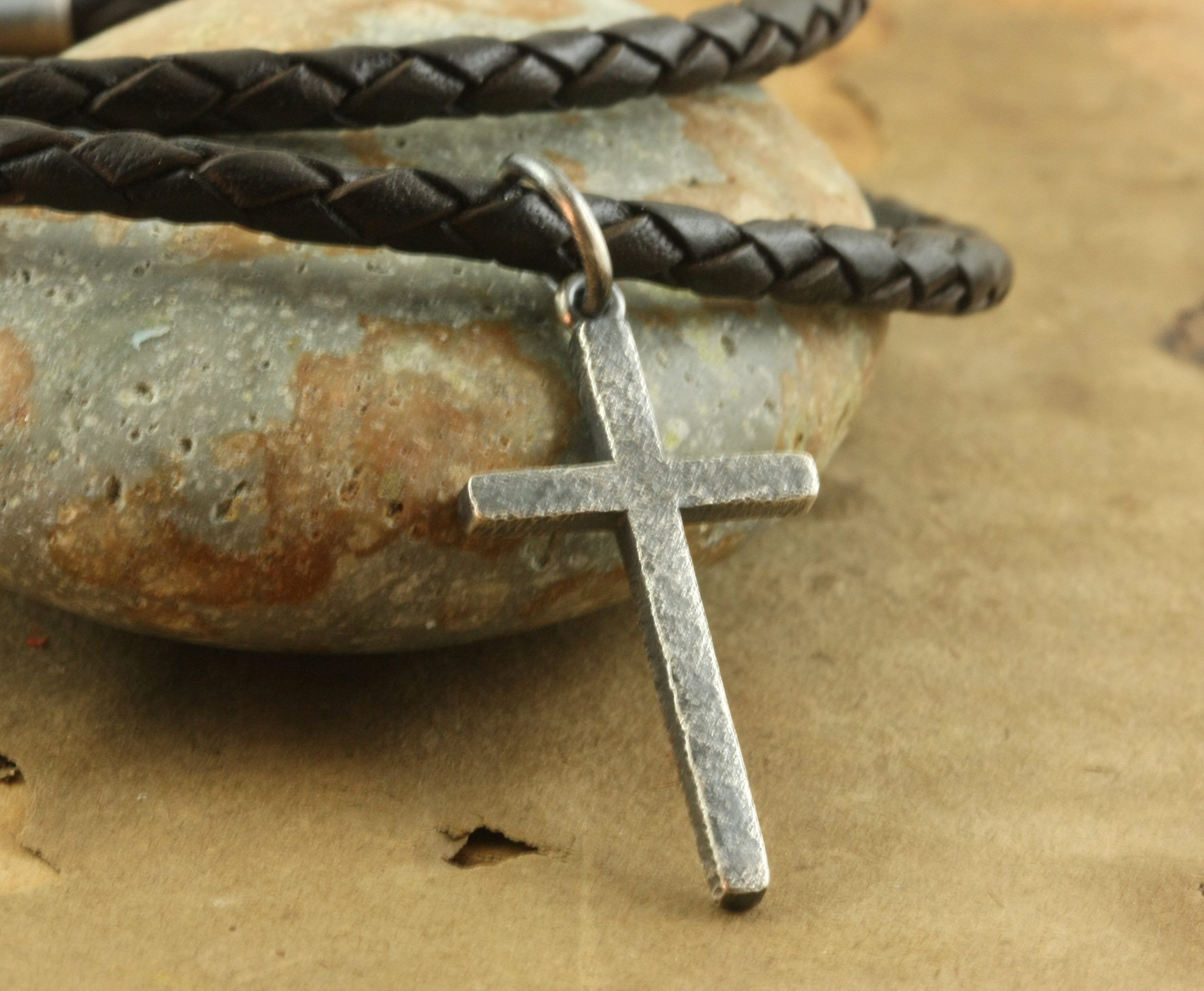 - Mens cross necklace on leather cord sale online