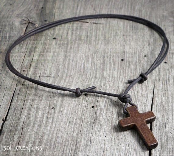 - Mens cross necklace on leather cord shop