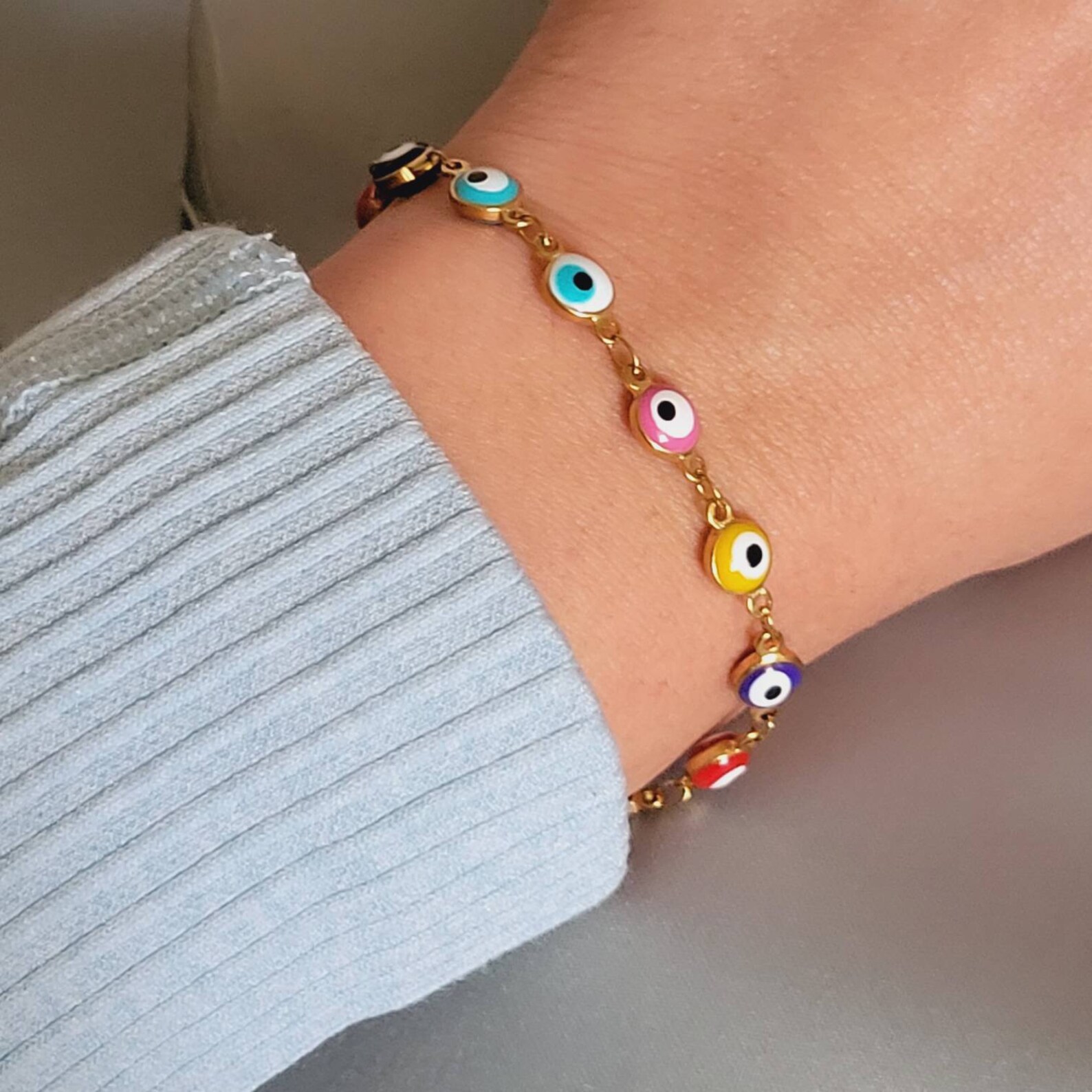 - Gold evil eye ankle bracelet