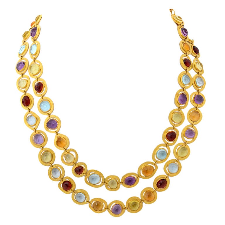 Gold with stone necklace clearance, Long Gold Chain with Semi Precious Stones For Sale at 1stdibs clearance