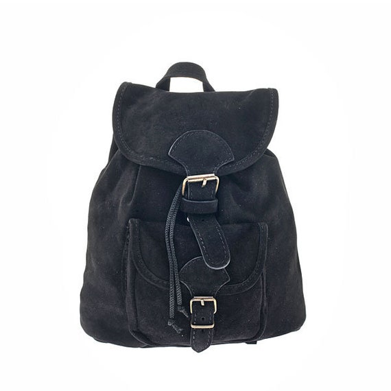 Black suede backpack women's clearance, Suede Backpack - Etsy clearance