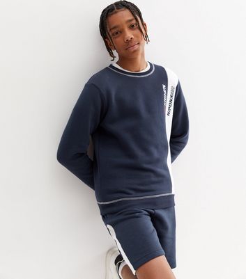 Boys navy sweatshirt clearance, New Look Boys' Navy Spliced Crew Neck Sweatshirt - 10-11 Years clearance