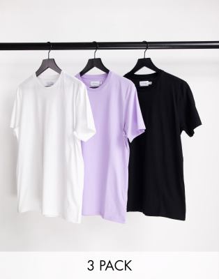 Topman multipack t shirts clearance, Topman 3 Pack Classic T-Shirt White, Black and Lilac - Multi clearance