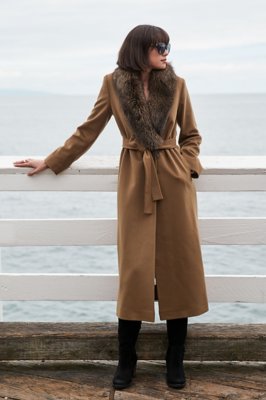 Wool and fur coat clearance, Cashmere Wool Coat With Fur Trim Hood clearance