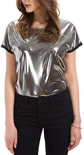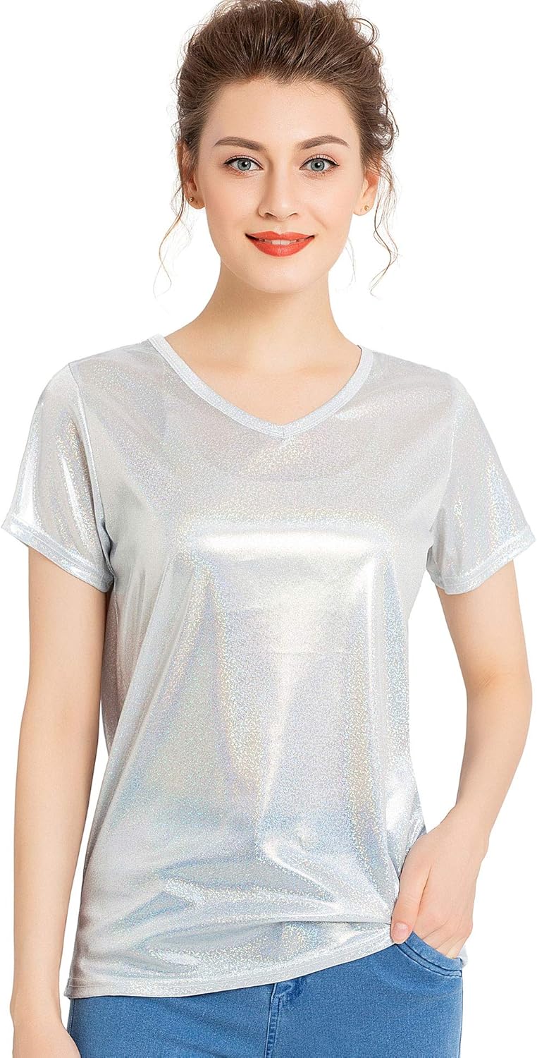 - Metallic silver t shirt women's free shipping