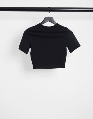 Black crop t shirt plain clearance