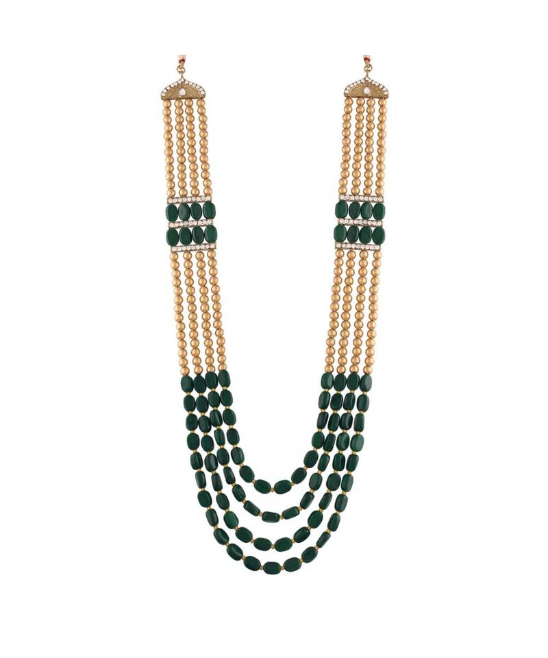 Dulha moti mala clearance, 4 Layered Traditional Dulha Moti Mala with Beads Maharaja HaarGroom Necklace (MLP37G) - I Jewels clearance