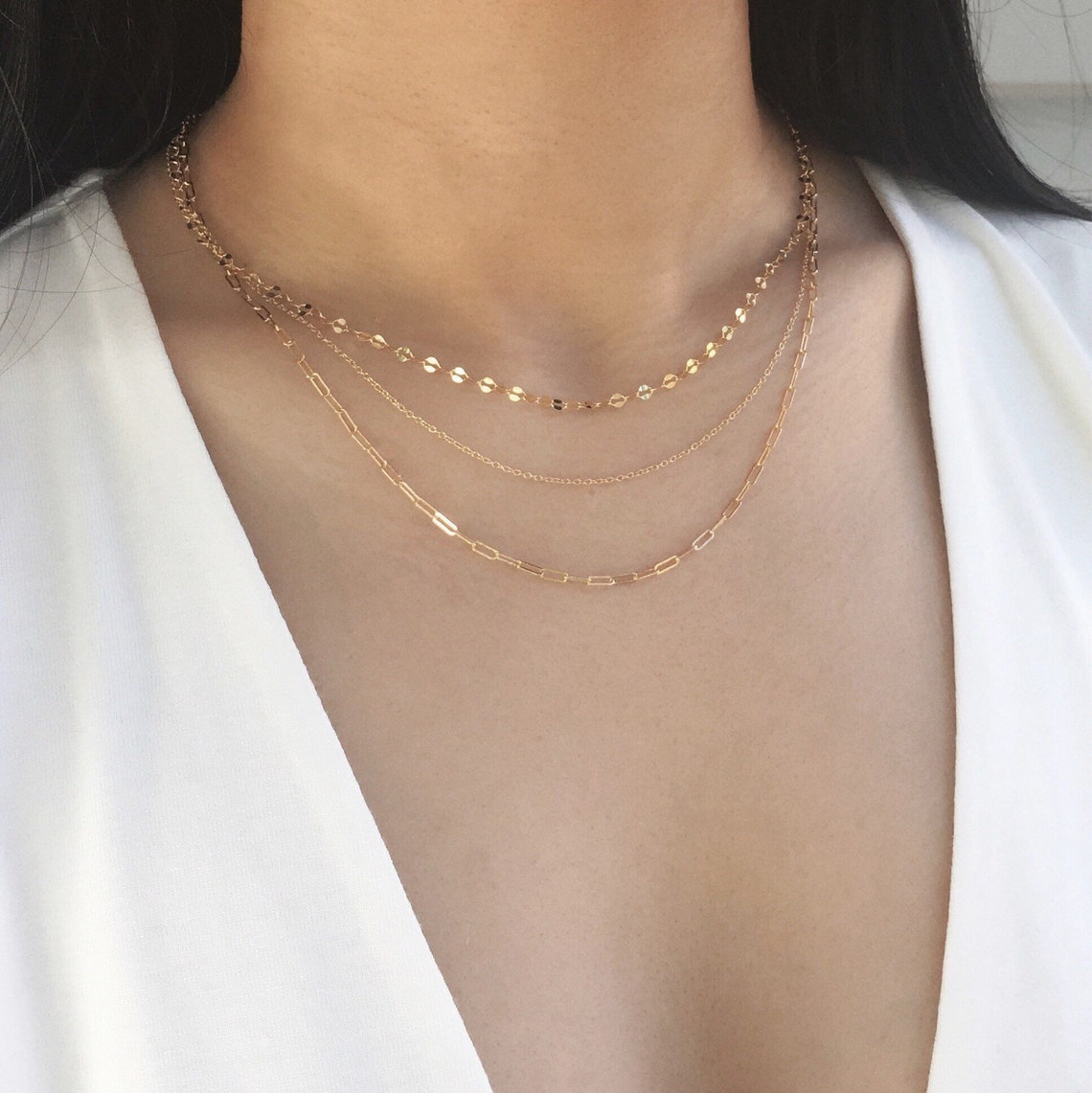 Modern neck chain clearance, Custom 3 Layer Chain Necklace Chain Necklaces Gold Layering - Etsy clearance