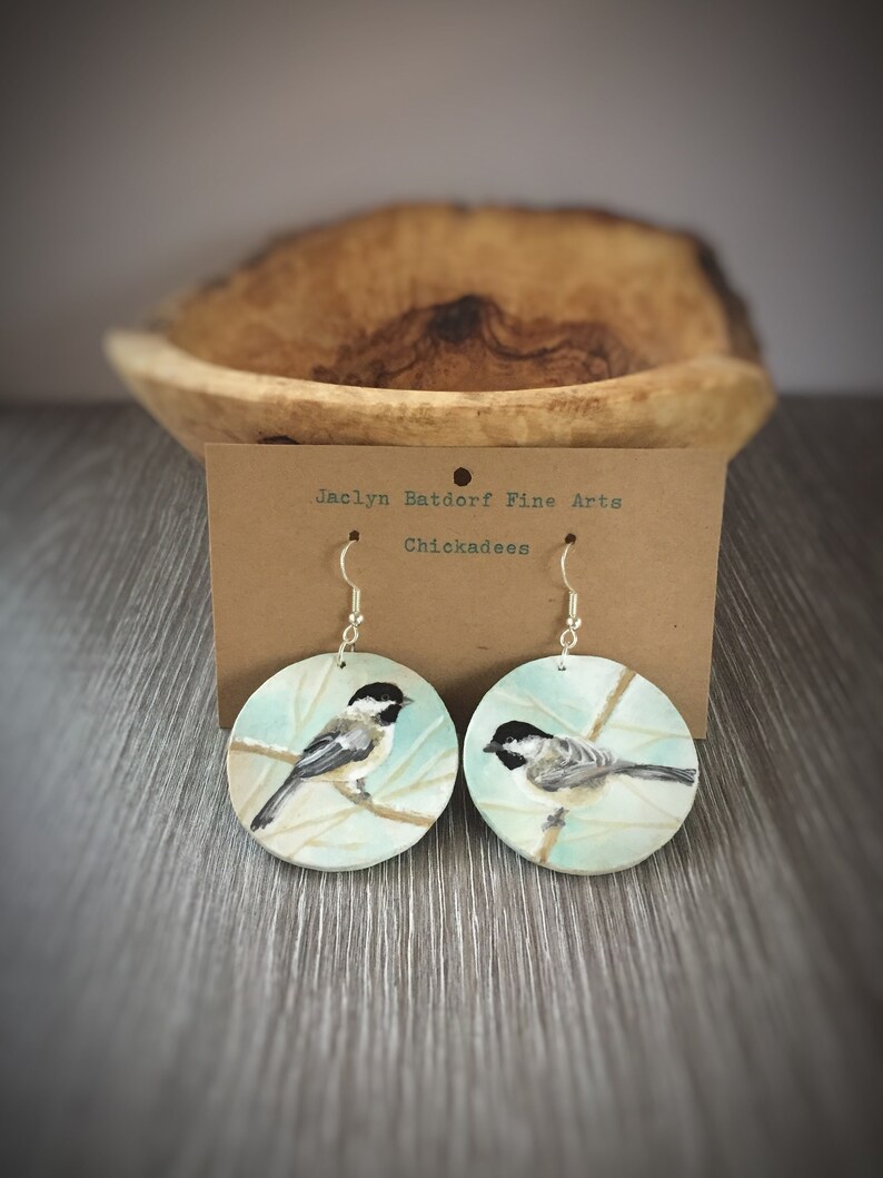 Chickadee earrings clearance, Hand-carved & painted wooden chickadee earrings : r/ArtisanGifts clearance