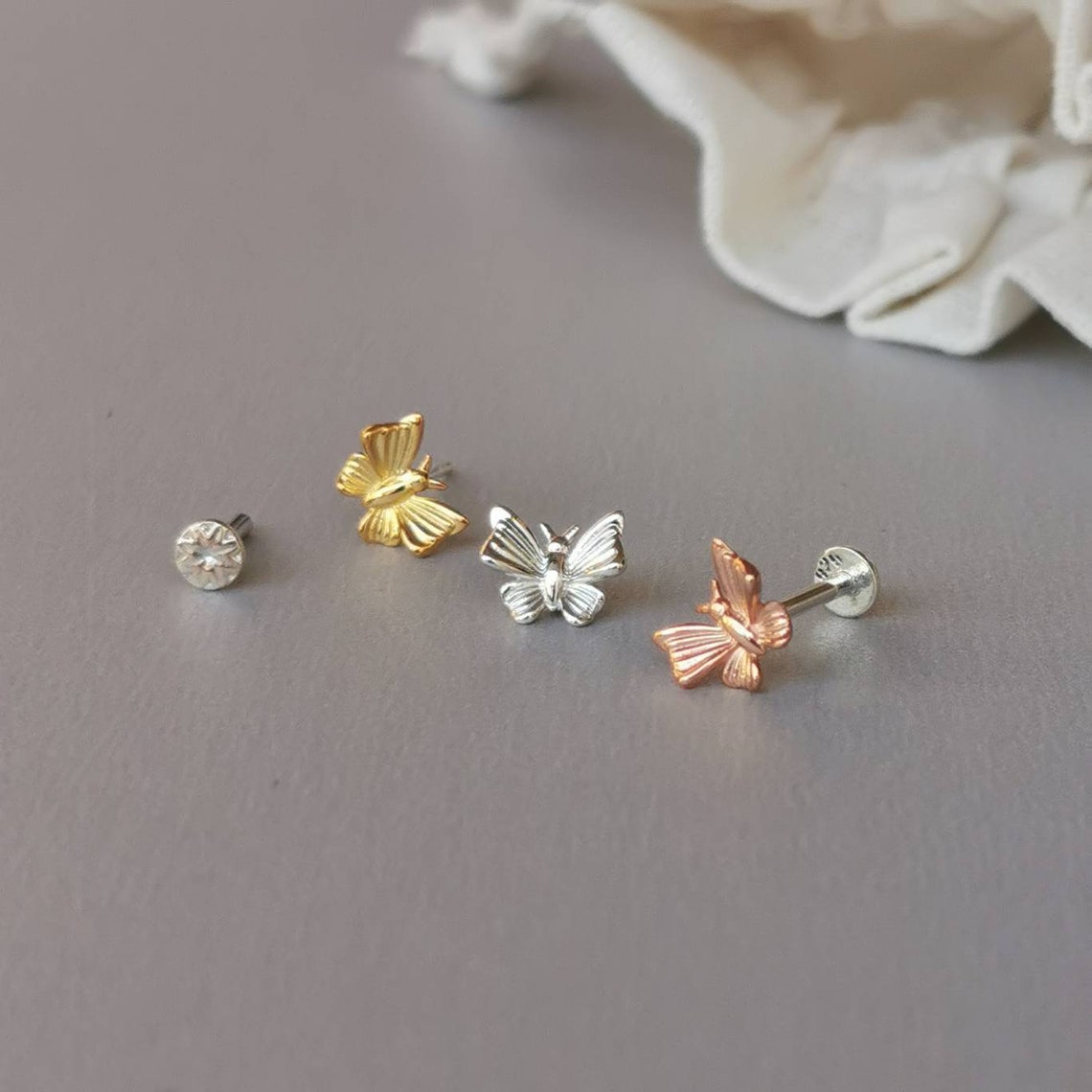 18 gauge helix earrings clearance, Tiny Butterfly Helix Earring 18g/16g Threadless Sterling | Etsy clearance
