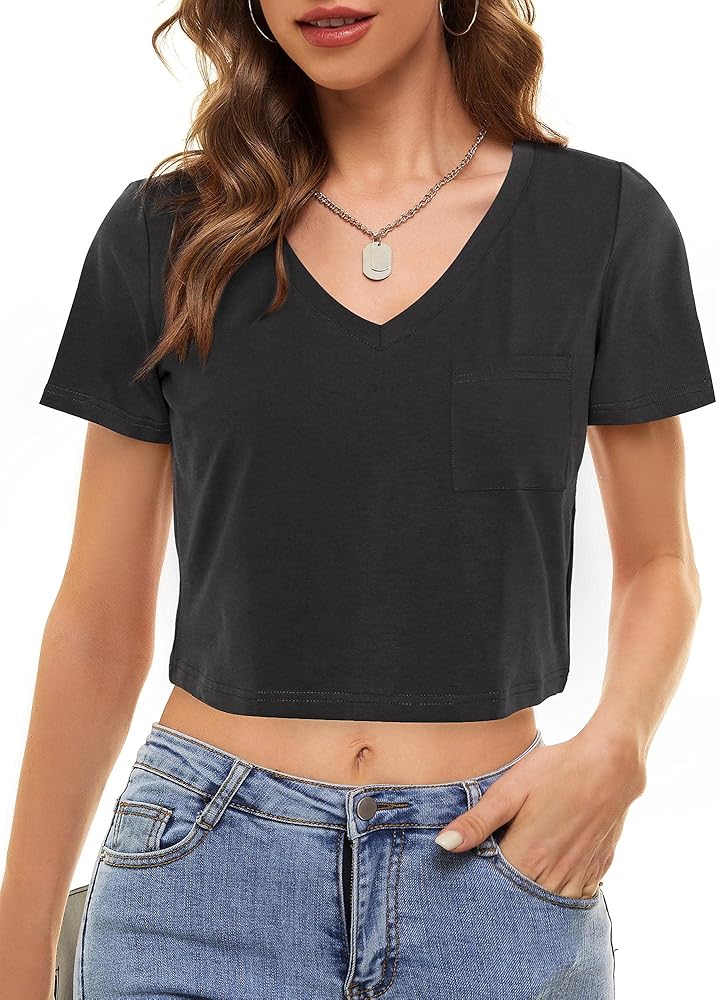 Cropped v neck shirt clearance