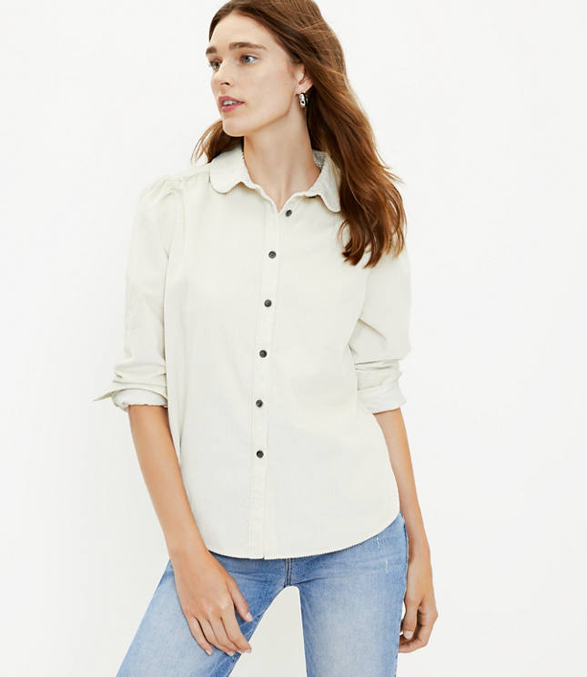 Petite corduroy shirt clearance, Petite Corduroy Round Collar Shirt | LOFT clearance