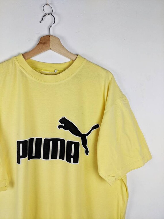 Puma t shirt vintage clearance, GarageVintageClothes Vintage Puma T-Shirt Embroidered Big Logo Yellow 90s clearance
