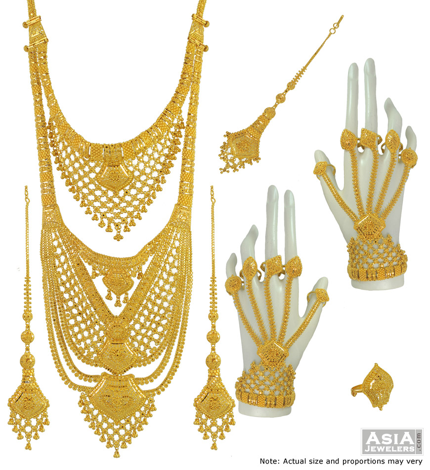 Gold rani haar set clearance, 22k Exclusive Bridal Set(Rani Haar) - StBr11372 - 22k yellow gold necklace and earring set clearance