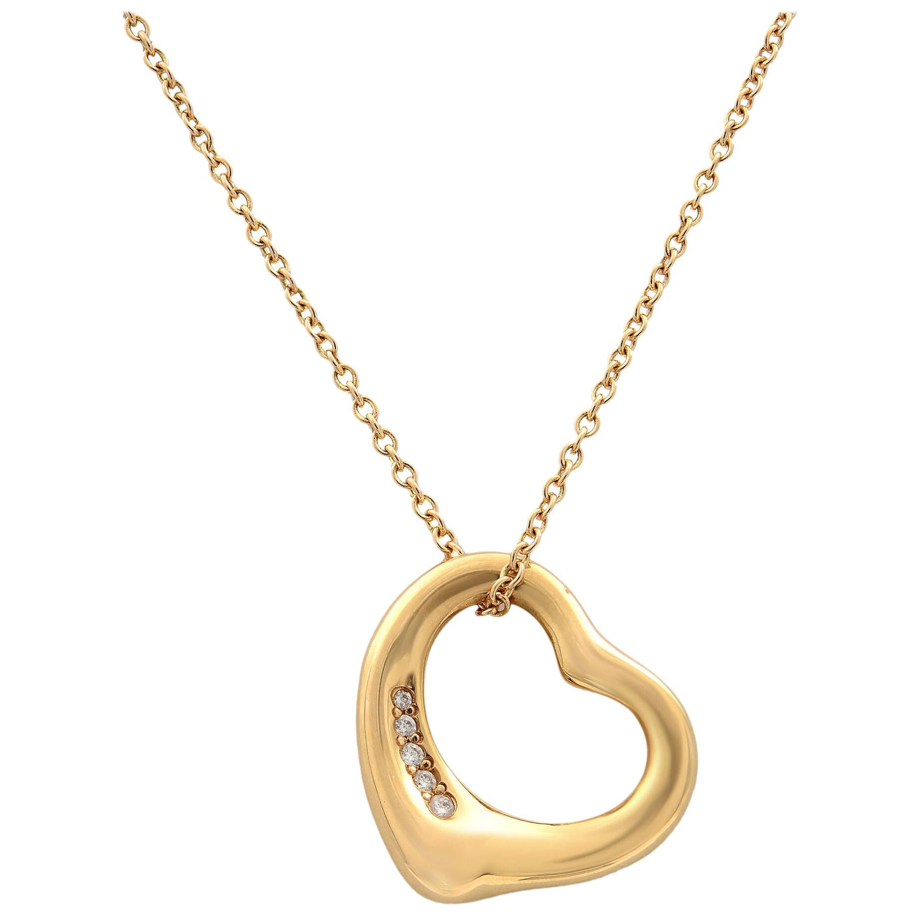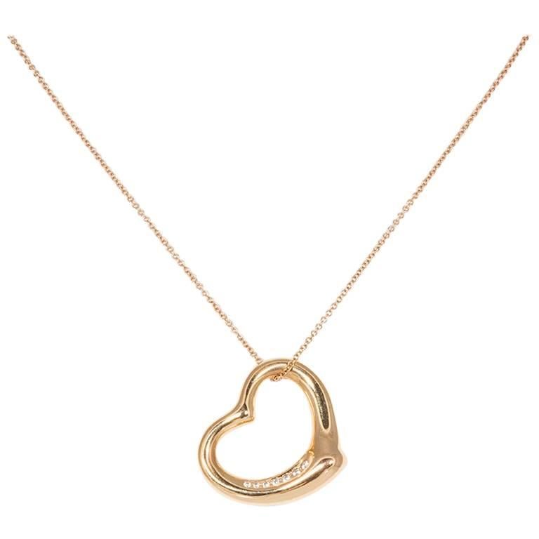 Tiffany and co rose gold heart necklace clearance, Tiffany and Co. Elsa Peretti 18k Rose Gold and Diamond Open Heart Pendant Necklace at 1stDibs clearance