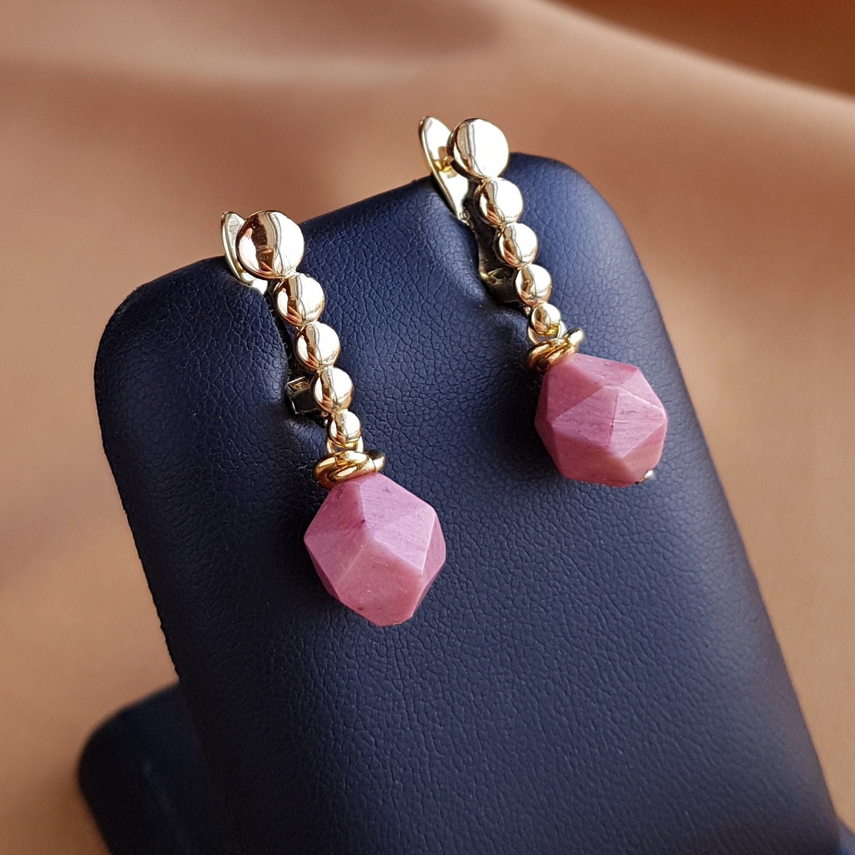 Gold pink earrings clearance