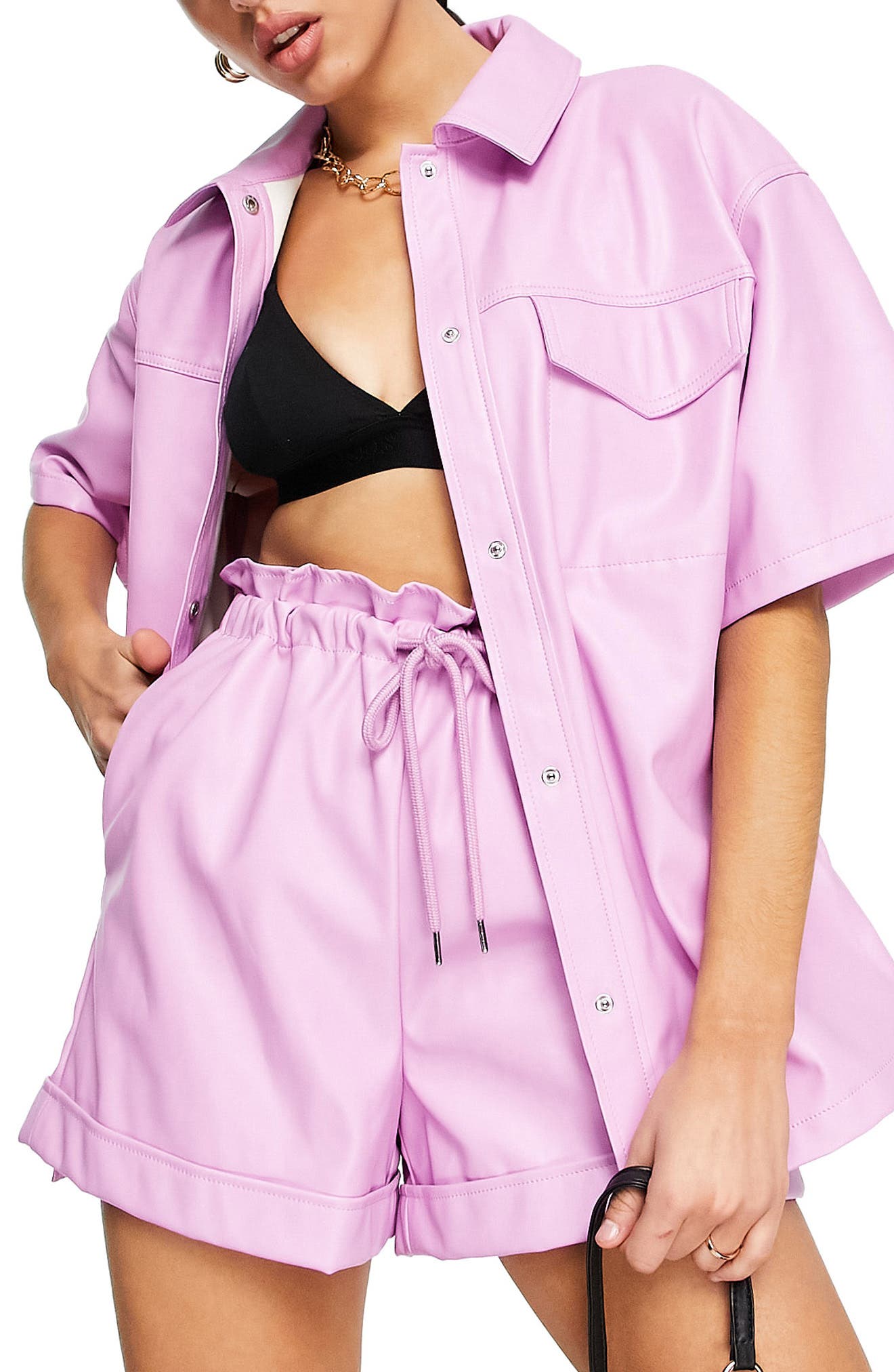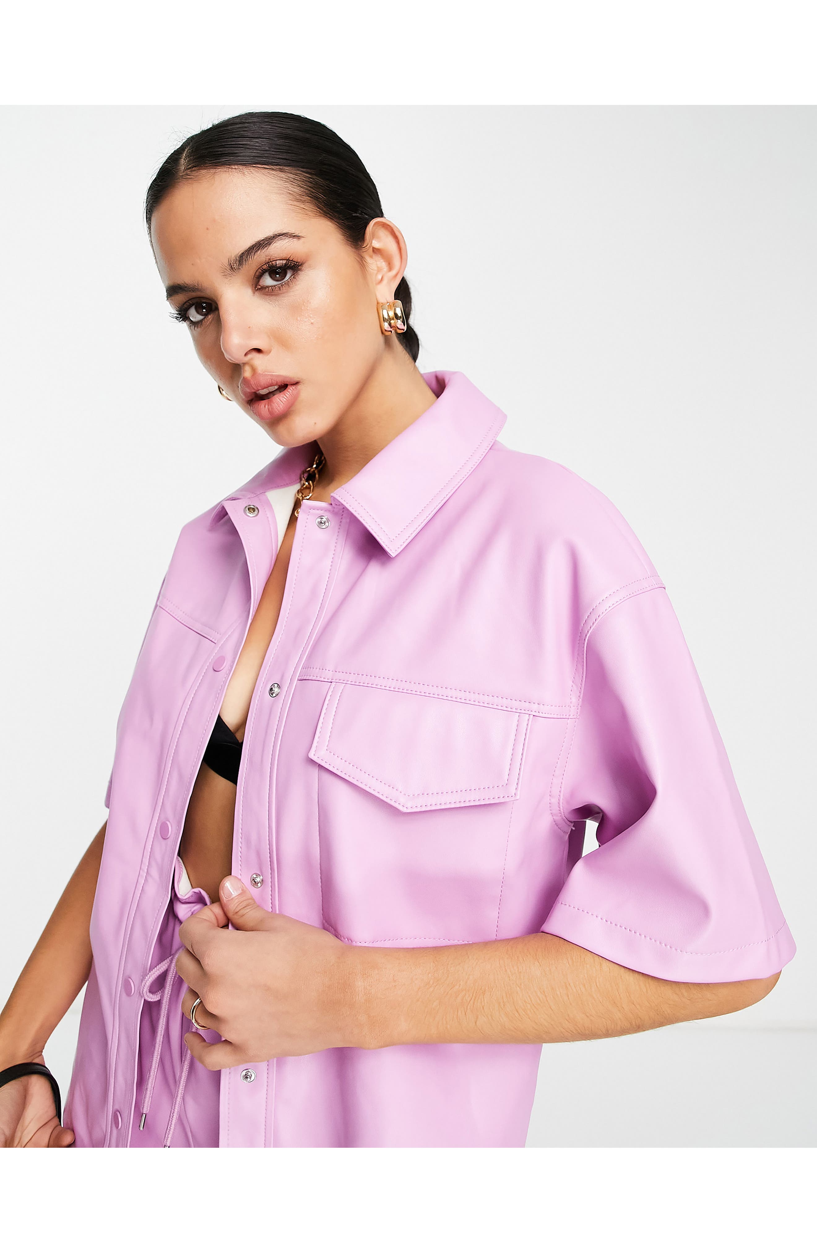 - Pink faux leather shirt clearance