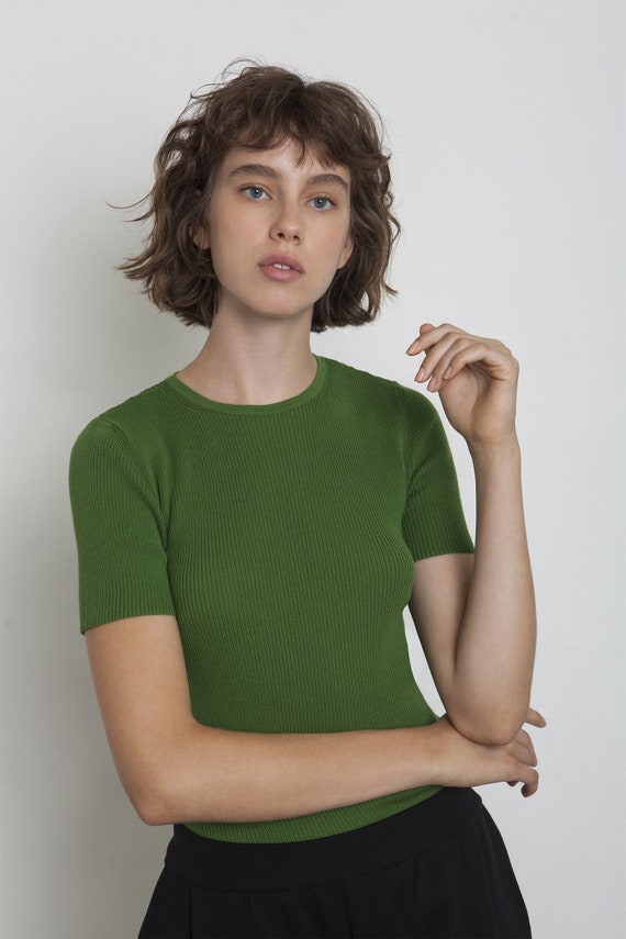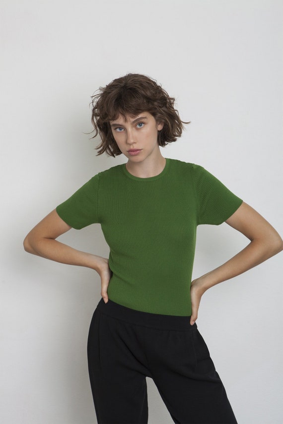 T shirt cotone egiziano clearance, T-shirt in cotone egiziano verde Top a clearance