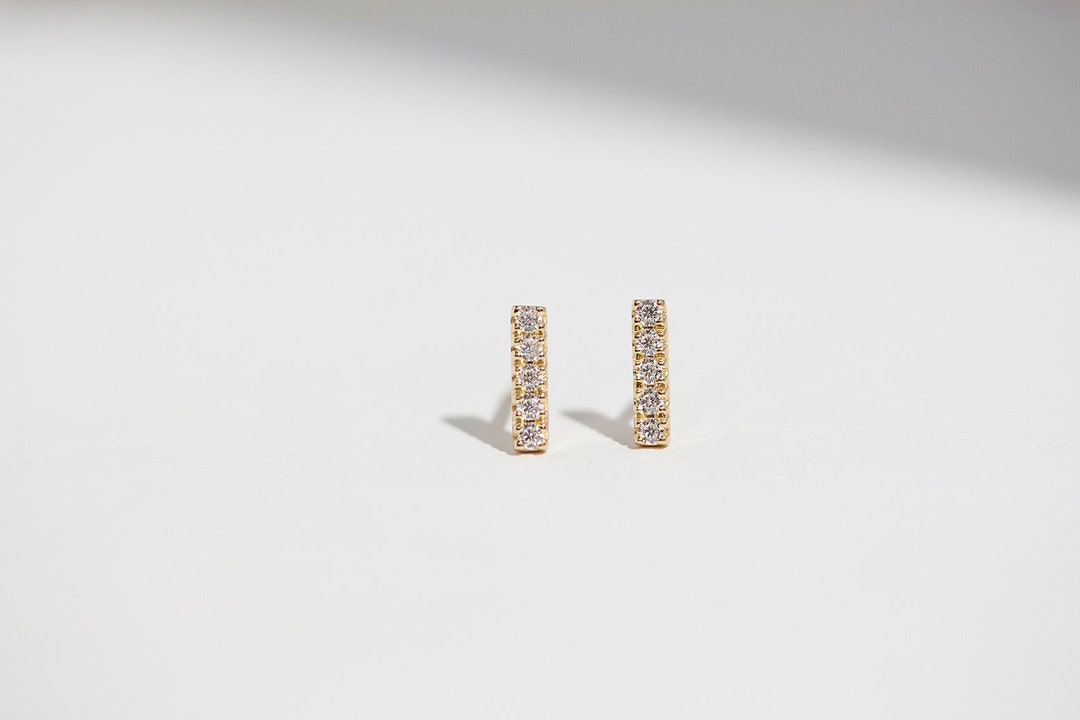 Pave bar earrings clearance, Pavé Bar Earrings 14K Yellow Gold Diamond Ear Stud Handmade Jewellery - Etsy UK clearance