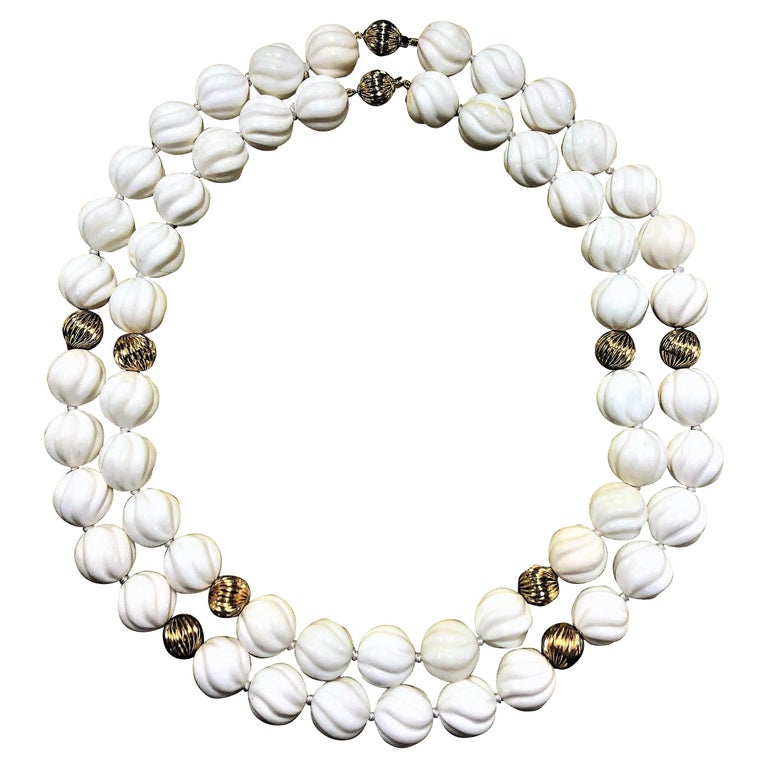 Gold necklace with white beads clearance, Set of Bright White and Gold Bead Necklaces For Sale at 1stDibs | white and gold beaded necklace clearance