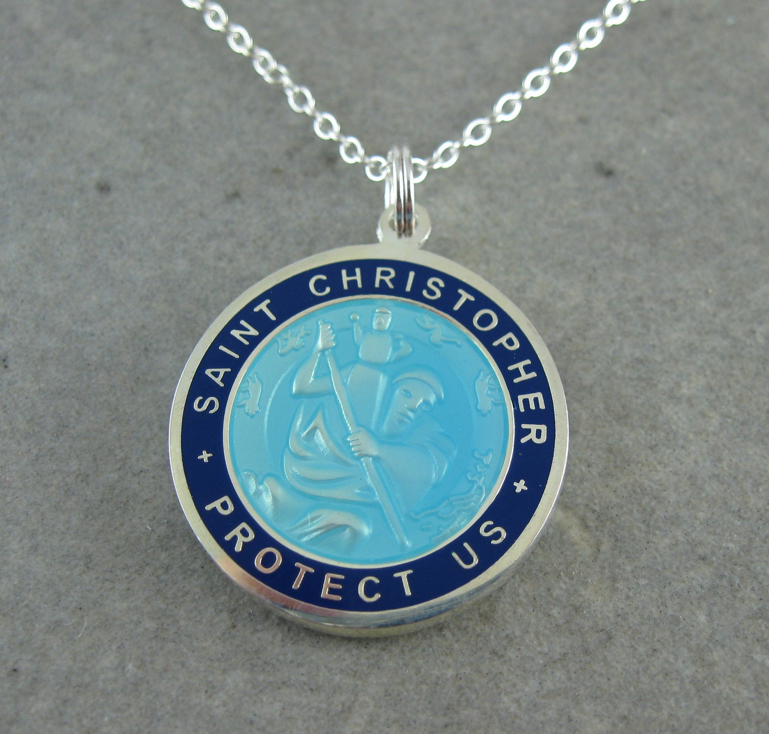 St christopher surf necklace amazon clearance, St. Christopher Surf Necklace, Large Pendant, Aqua Blue with Navy Rim, 23 Inch Ball Chain clearance