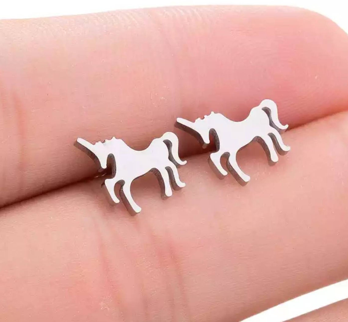 Unicorn earrings studs clearance, Unicorn Earrings Silver Studs Stainless Steel Fantasy - Etsy clearance