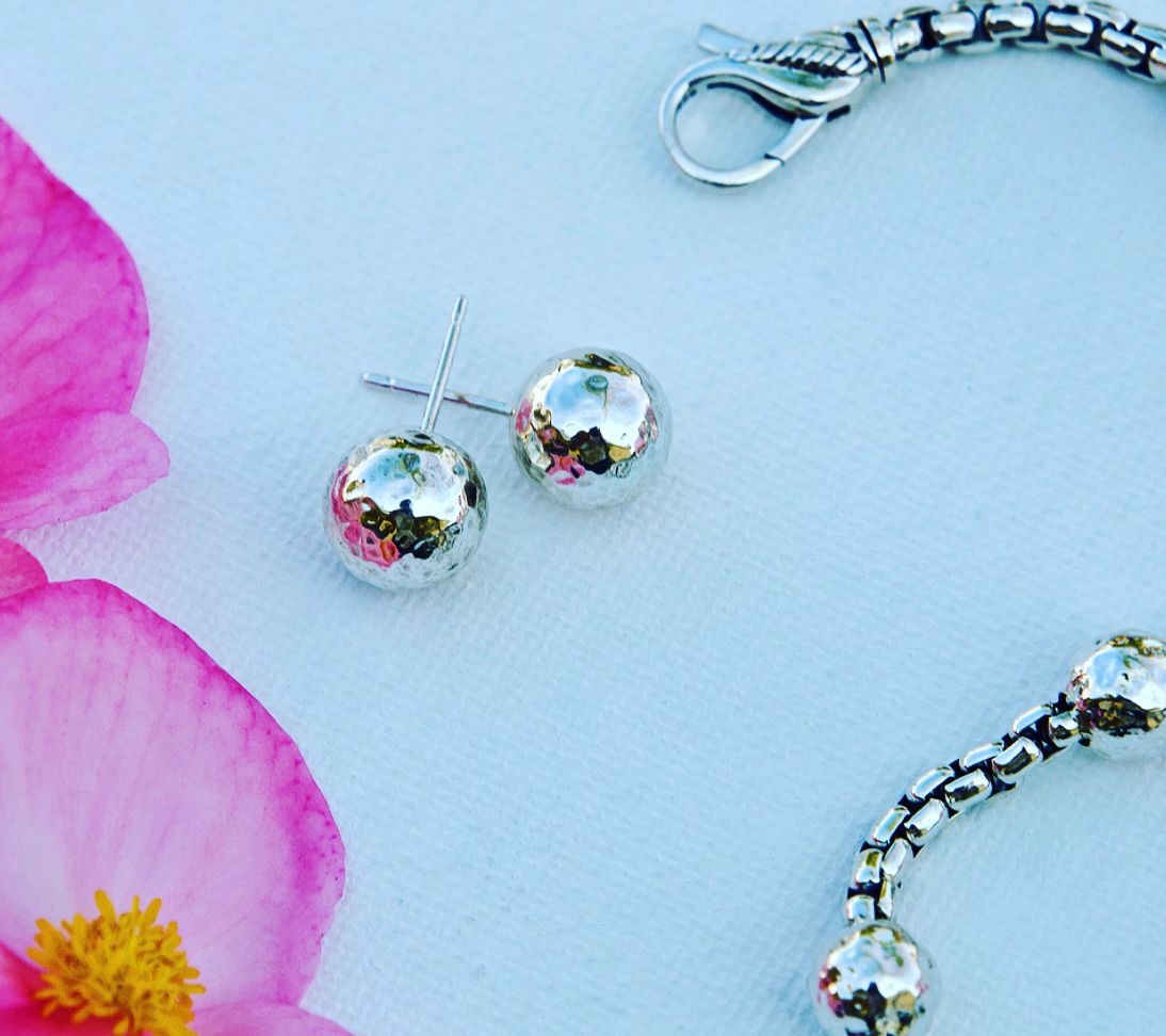 - Silver bead stud earrings